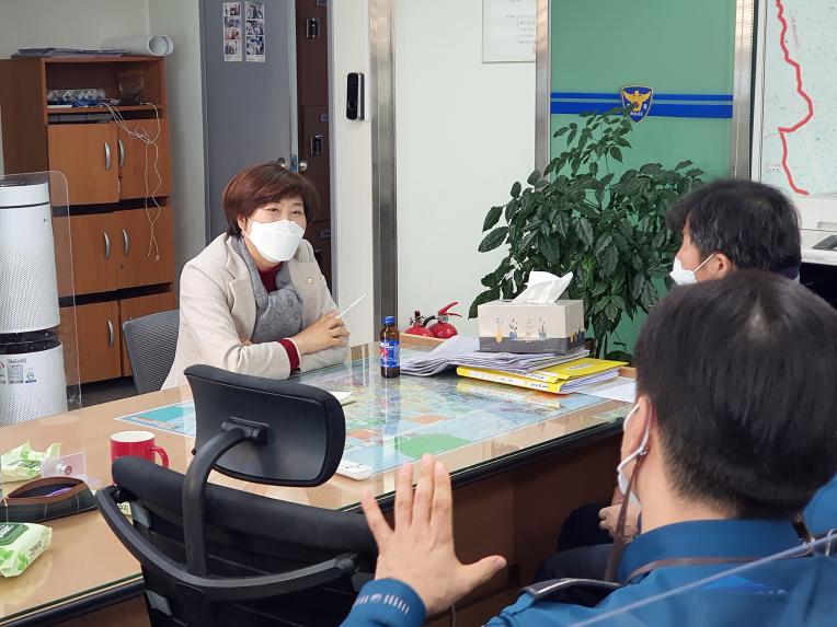 | ○ 일 시 : 2022. 1. 6.(목) 13:40 ○ 장 소 : 부곡파출소 ○ 내 용 : 현장 민원사항 및 애로사항 청취 ○ 참석의원 : 윤미경 의장 ![]() ![]() |